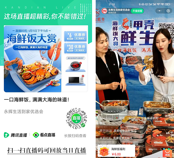 2020年4月15日,“海鮮飯大賞”線上直播,有家電抽獎環節,一小時多的直播有70000+的瀏覽,8000+的觀看人數。